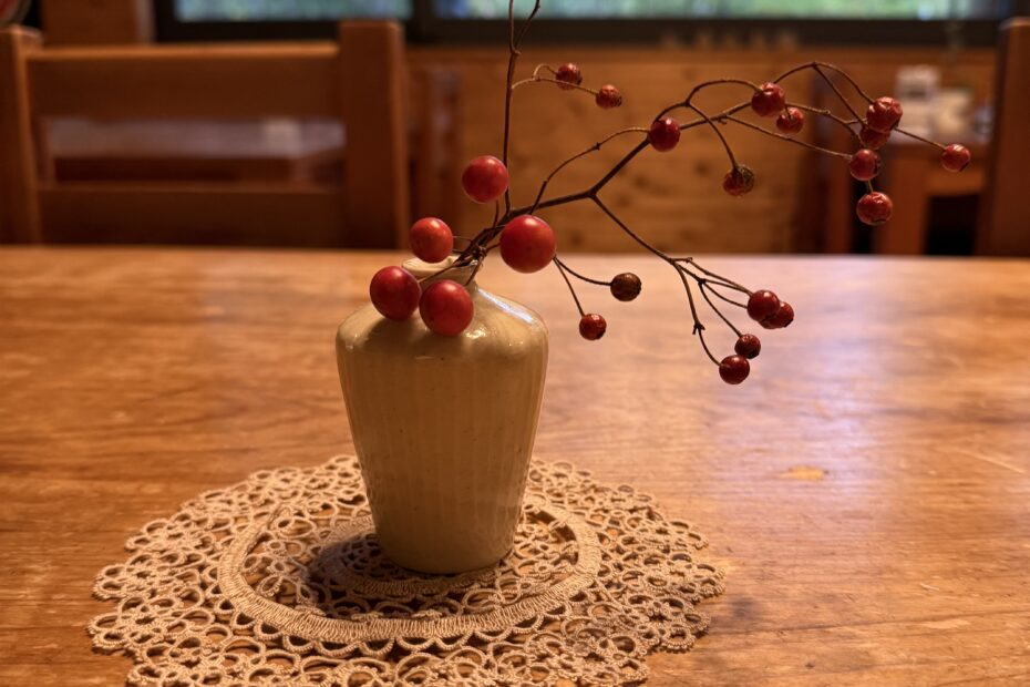 散策をしていて手折ってきた山帰来と野茨の実がテーブルの上で秋を告げています 何とはない草花達で以前はどこにでも見かけてのですがこの頃はすっかり見なくなりましたね 子供の頃山帰来の葉は餅を包むのに、野茨の実は小さな独楽として遊んだ記憶があります がめの葉餅とか言って中々美味しかった記憶がありますが今でも時々道の駅で見かけることがあります 懐かしさ半分、美味しさ半分でついつい買ってしまいます そう言え… 続きを読む »こんなところにも小さな秋
