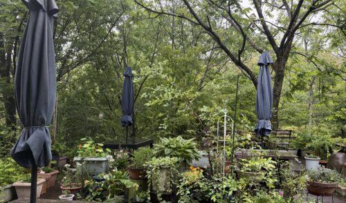 6月の雨がシトシトと降る野乃花の庭です