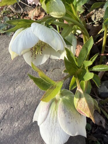 春に誘われて庭に出てにると沢山のクリスマスローズの花が見頃を迎えています